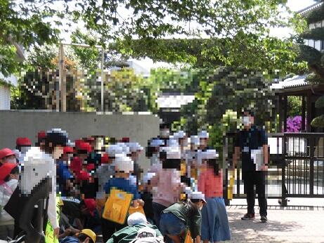 部活とは別に、今朝は3年生が1回目の学区探検に出かけました。