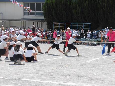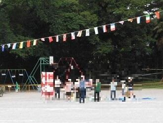 いつも通りの種目に加え、児童が主体となって考えた150周年記念種目「ダンシング玉入れ」を行いました。