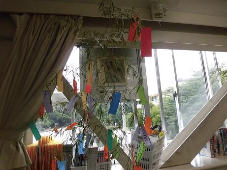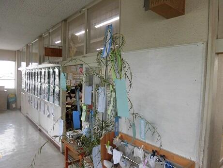 かなり多くのクラスで担任の先生が笹の葉を用意してくださり、子どもたちの願い事が教室や廊下に飾られていました。