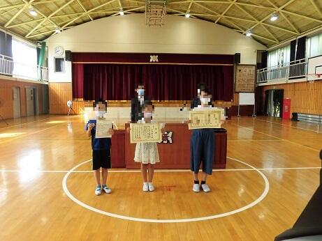 3人の児童の表彰が行われた後に、各学年の代表者が校長先生から通知票を手渡されました。