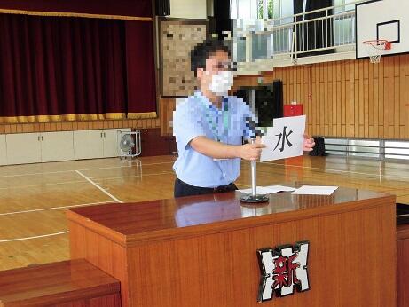 校長先生から1学期の児童の皆さんの頑張りを評価するお話がされた後に夏休みの過ごし方について担当の先生からお話がありました。