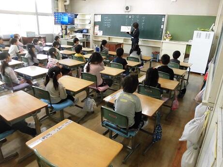 1年生の教室でも早速初日の今日から読み語りが行われたのですか、読み手の「絵本の花束」の方が「1年生なのにすごく静かにしていて素晴らしいですねー。」と感心されていました。