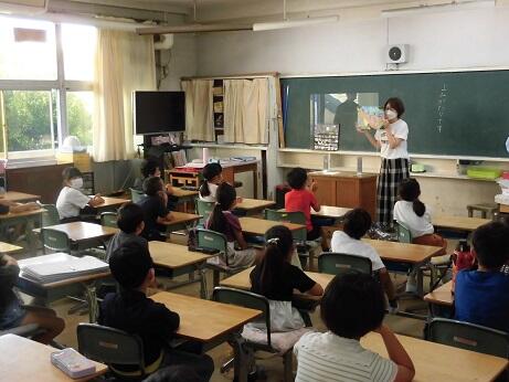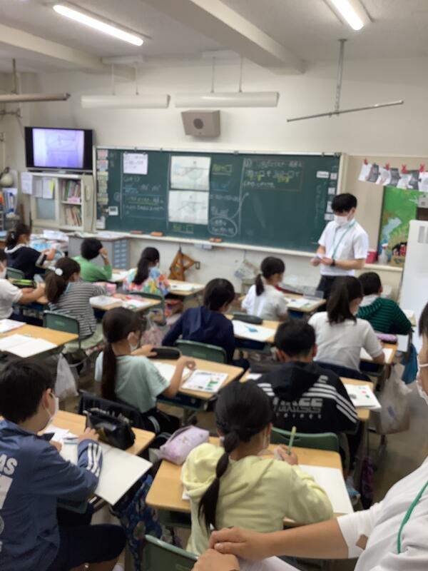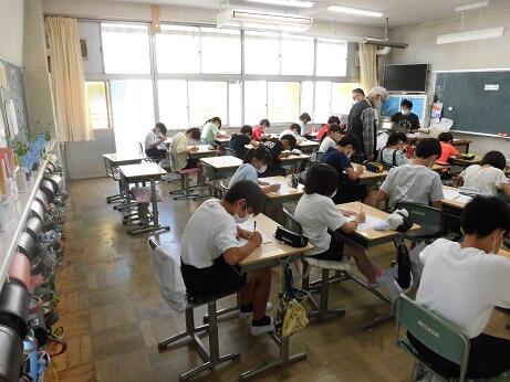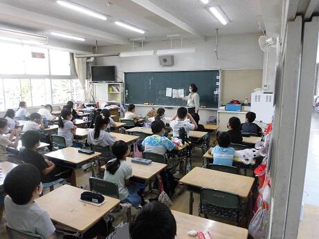 4年2組での教育実習をしていた先生が間もなく4週間の実習期間を終えられるということで、今日は精錬授業ということで研究授業を行い、校内の先生方が参観して授業についての検討をしました。