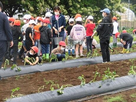 今日は②時間目に2年生がさつまいもの苗植えを行いました。