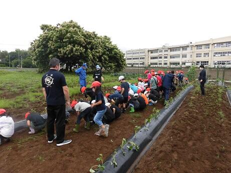 JAとうかつ中央の職員の方が畑の先生としてご来校下さり、2年生に苗植えについて教えて下さいました。