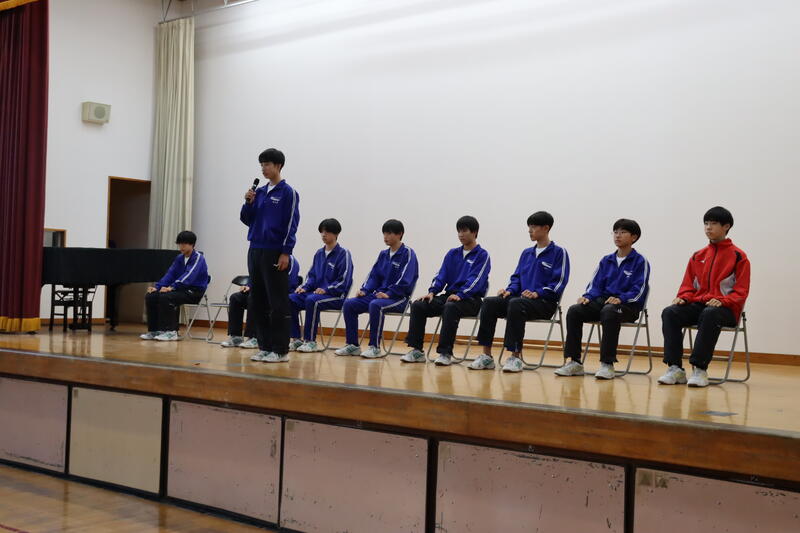 こんにちは。突然ですが、14日に滋賀県で行われる「第33回全国中学駅伝大会」に常中の特設駅伝部が出場します。また、それに先立って駅伝部の選抜メンバーが明日現地入りをするということで、今日の帰りの会の時間に壮行会がありました。今回の全国大会は開催地の滋賀県(2校)を除くと1つの都道府県から各1校づつしか出場することができません。そんな名誉のある大会で、えんじ色のユニフォームを着たランナーたちがドラマを紡ぎます。今年たくさんの感動と勇気を与えてくれた駅伝部。華やかなところしか注目されないかもしれませんが、その裏には部活として、個人としてのたゆまぬ努力と想像もつかないような葛藤があったのではないかと思います。また全国大会に出場するのは2年ぶり・2回目。中学校にいる短い3年間の間にこの貴重な体験を2回も体験させてもらって、ありがたいなぁと感じます。駅伝部のスローガンの通り、気持ちには、引力があります。応援してくれる人を引き込んで、自分の気持ちと掛け合わせて最後まで走り切ってください!常中一同応援しています!胸を張っていってらっしゃい!!