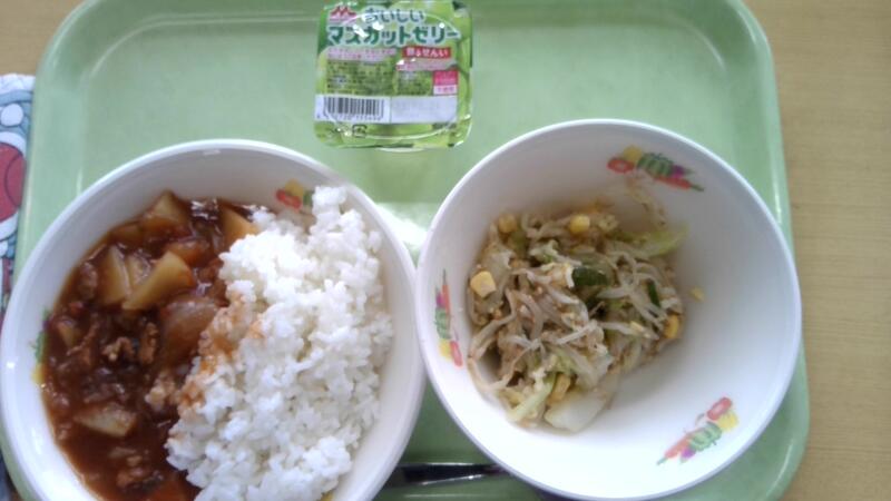 この写真は題名の通り5月22日の給食です。この給食メニューはハヤシライス、サラダ、マスカットゼリーです。一番おいしかったのはマスカットゼリーです。私はブドウが好きで、マスカットゼリーが出たのでとてもうれしかったです。触感はぷにぷにというよりつるつるした感じでした。今後は、きなこ揚げパンが出てほしいな・・・(笑)今後が楽しみです、以上でした。また閲覧お願いします。1-3広報委員