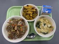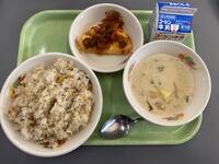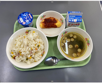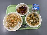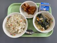 【メニュー】牛乳 高菜チャーハン ヤンニョムチキン 大根とわかめの中華スープ