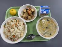 初日の献立名は「秋に食べたい、おいしい給食」、PRポイントは「秋なので栗ご飯にした他、季節感のあるものや、秋に食べたくなるものを取り入れました。海藻類が不足しやすいので、みそ汁にわかめを入れました。」とのことです。