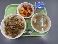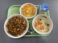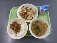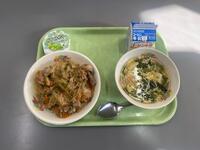 【メニュー】牛乳 回鍋肉丼 わかめスープ 黒糖きなこ大豆