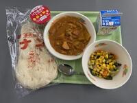 【メニュー】ポークカレーライス ツナサラダ 豆乳いちごクレープ 牛乳