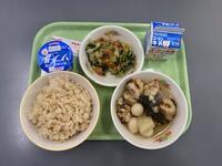 【メニュー】わかめごはん イナダの照り焼き おかかあえ 豚汁 牛乳