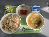 【メニュー】キムチチャーハン ヤンニョムチキン ニラ玉コーンスープ 牛乳