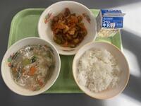 【メニュー】牛乳 ごはん 油淋鶏 きゅうりのナムル 春雨入り野菜スープ