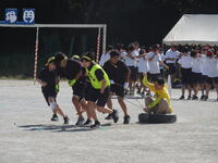 また本年度は部活動対抗リレーを復活させ、各部の精鋭による熱いレースや工夫を凝らしたパフォーマンスに会場は最高潮の盛り上がりを見せました。教員チームも参戦し、生徒からの大きな声援を受けて力走しました。