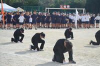 練習では、今自分が何をすべきかを判断し、行動している生徒の姿も見られました。気づかずにおしゃべりをしている仲間に対し、互いに声を掛け合い、一体感のある体育祭をつくっていこうとする姿勢を感じました。