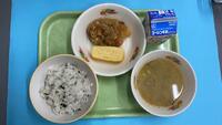 牛乳 わかめごはん 厚焼きたまご じゃがいものそぼろ煮 根菜のごまみそ汁