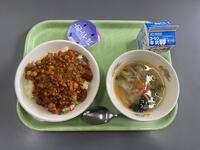 【メニュー】マーボー豆腐丼 中華卵コーンスープ みかん 牛乳