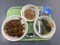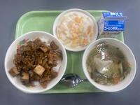【メニュー】牛乳 回鍋肉丼 わかめスープ 黒糖きなこ大豆