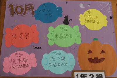 本校では、広報委員のみなさんが月予定の掲示物を手作りで作成しています。
