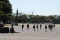 昼休みに応援団の3年生が2年生に演舞を教えています。