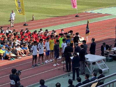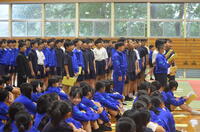 そして集会のクライマックス、校長先生から一区の選手へ新しいタスキが手渡されると、会場の空気が一変しました。