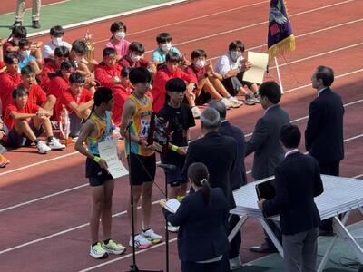 今年からユニフォームとタスキを新調しました。タスキには、顧問の想いである『夢走(むそう)』、そして選手たちへのエール 『1秒を削りだせ』 の文字が力強く刺繍されています。