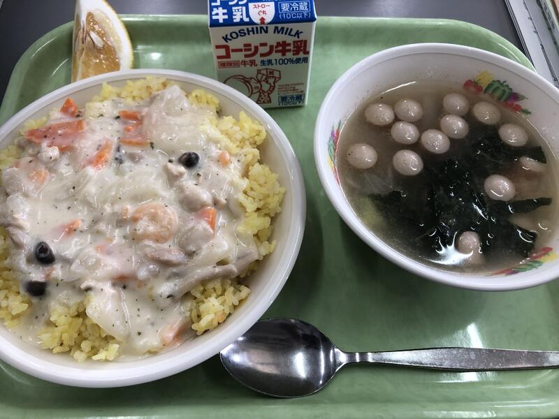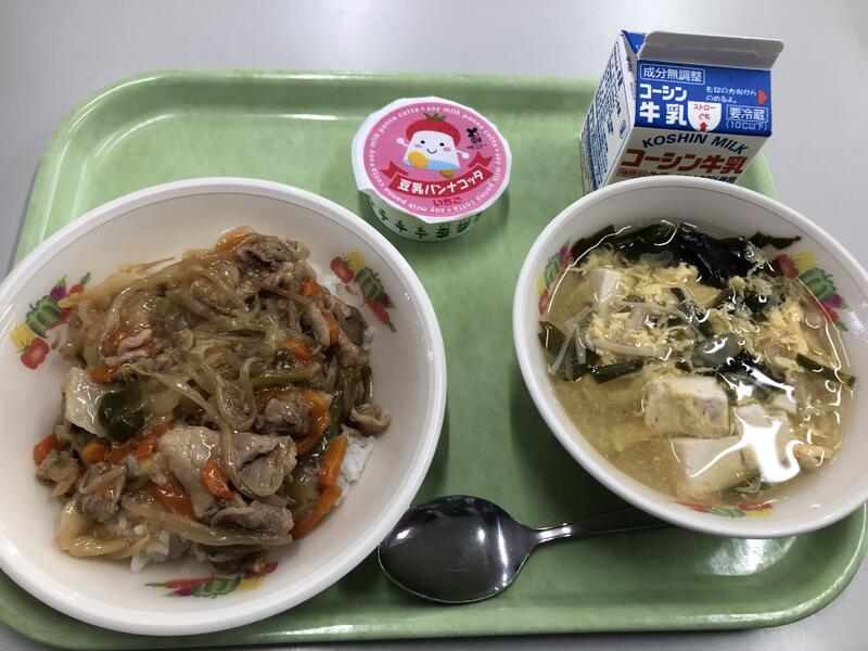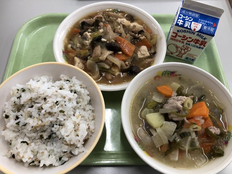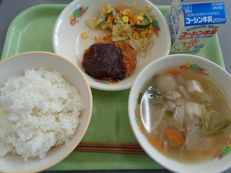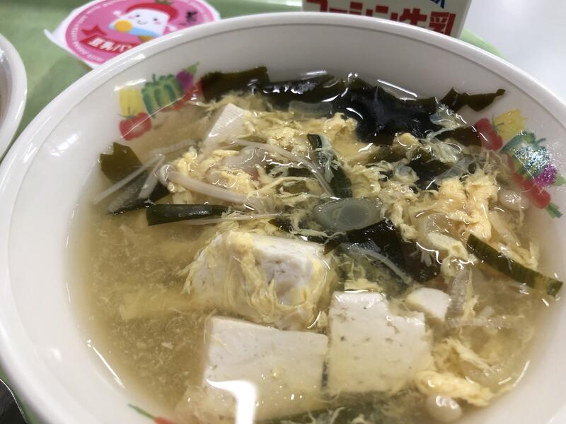 お味噌汁は、豚汁のような感じで、お肉、お野菜がしっかり使われています。ごまが入ることで、スープが濃厚でマイルドに仕上がっていました。今日も幸せな給食でした♪