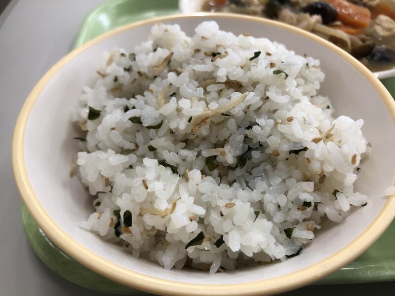 ご飯は、じゃことわかめとごまがふんだんに混ぜ込まれていて、何杯でも食べられてしまいます!
