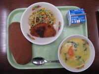 牛乳 キムチチャーハン 揚げぎょうざ 玉米湯(ユイミータン) 冷凍みかん