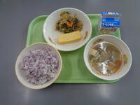 【メニュー】牛乳 ゆかりごはん 厚焼き卵 ごまあえ のっぺい汁