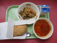牛乳 きなこ揚げパン 肉と野菜のごまサラダ ミネストローネ