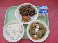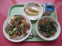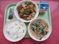 牛乳 白飯 のり ホイコーロー 春雨スープ
