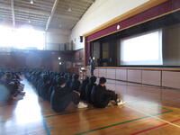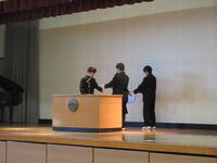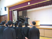 令和5年度第3学期始業式を実施しました。始業式に先立ち、校歌の指揮者と伴奏者が3年生から2年生に引き継がれました。その後、新指揮者と伴奏者のもと校歌合唱を行いました。始業式では、校長先生から「能登半島地震に対しての直接的支援、間接的支援の在り方や災害時には考えて行動し自助・共助の力が必要」「自律・自立のため君たちはどう生きるか」の話がありました。自分自身の目標をしっかりと持ち3学期もがんばって欲しいと思います。