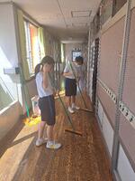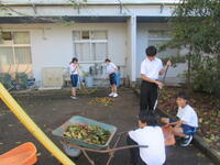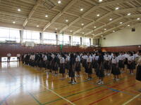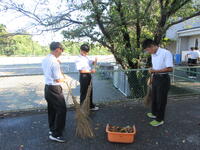 2学期もよろしくお願いします!夏休み中、各部活動で落ち葉掃きをしてくれました。本日も応援団を中心に集まり、きれいな環境を維持することができています。そして、落ち着いた雰囲気で始業式を行うことができました。