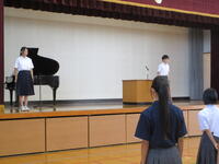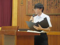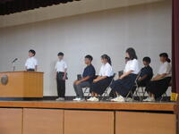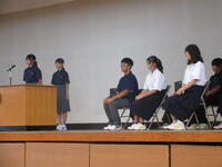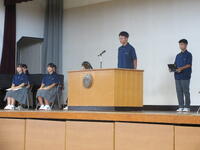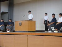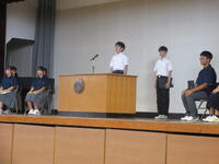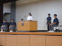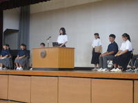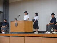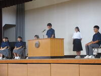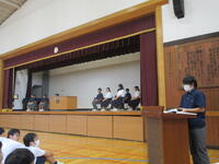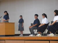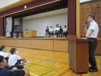 校長先生からは、夏休みに能登町に視察に行って学んだことや感じたことを交え、苦しいことや大変なこともあるだろうけど、今の環境に感謝し、自分に何ができるかを考えてほしいとのお話がありました。また、自然災害への対応として9月中に保護者の方へ調査メールを送付しますのでご協力をお願いします。