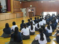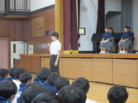生徒指導主任の曽合先生からはちょっとの気遣いをしていこうとのお話がありました。迷惑をかけない、周りを助ける、GIVE and TAKE など、キーワードがたくさんありました。また、自転車の乗り方について改めて確認をしました。安全を守るために、一度立ち止まることも選択肢に入れてほしいと思います。