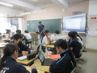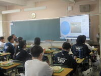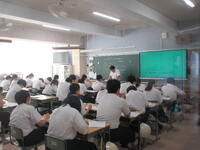 夏休み中に納品していただいた電子黒板を積極的に活用しています。今までもテレビやプロジェクターに映し出して視覚的効果がありました。特大サイズ(75インチ)の電子黒板は資料を掲示するだけではなく、直接書き込むこともできます。職員も効果的な使い方を共有しながら授業を実戦していきたいと思います。