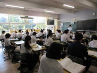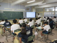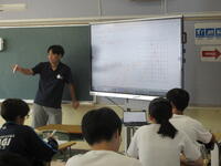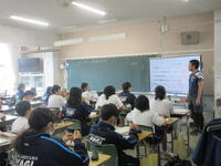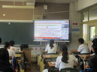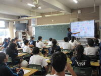田中教育長と吉川いじめ防止相談対策室長が電子黒板の視察に来校されました。夏休みに大型の電子黒板が導入され、授業や学級で積極的に活用しています。どの授業も電子黒板が視覚的な役割を果たし、学習意欲の向上にもつながっていると思います。視察後、「先生も生徒も楽しそうだった」「手元がしっかり見えるので作業の様子がよくわかった」「生徒も電子黒板を操作していてすごい」といったお言葉をいただきました。今後もより良い活用に向けて検討していきます。