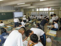 本日、1~3年生ともに実力テストを行いました。登校後、テスト勉強をしたり友達と問題を出し合ったりする姿も見られました。テストにも集中して臨みました。学習の定着度を把握し、次につなげてほしいと思います。今回の結果に一喜一憂せず、目標をもって学習に取り組めることを願っています。