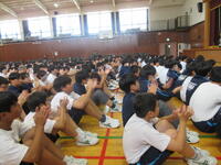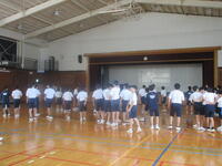 激励会では、選手紹介・意気込み・全校応援を行いました。選手から力強いメッセージがあり頼もしさを感じました。全校応援も素晴らしく、拍手や声量など一体感がありました。苦しい練習もたくさんあったと思いますが、仲間と共に練習に励み、ここまで成長することができました。自分を信じ、仲間を信じる!仲間の想いも胸に、力強く走り抜けてほしいと思います。八木中全員で応援しています!