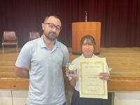 本日、葛北支会英語スピーチコンテストが流山エルズにて行われました。八木中学校からは大津舞桜さんが出場し、第2位を受賞しました。豊かな表現力で聞き取りやすい堂々とした発表でした。自分の思いを十分に伝えることができたと思います。夏休みから英語科の江尻先生やALTのマシュー先生と何度も繰り返して練習に励みました。また、前日のリハーサルでは、恩田先生や増田先生、同じ学年の友達からもアドバイスや応援のメッセージを受け取りました。学級からの応援も心強かったと思います。本当におめでとうございます!!!