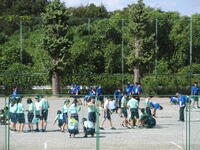 明日から体育祭練習期間となります。安全に練習ができるように全校で校庭の石拾いをしました。普段の体育や部活動でも拾ってはいるものの、大人数で探すと不思議とたくさんの石がでてきました。競技や応援以外の部分でも一生懸命に取り組む姿はとても立派です!明日からの体育祭練習が楽しみです!