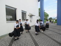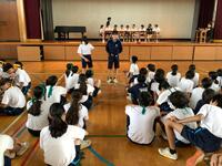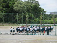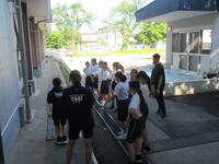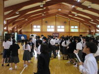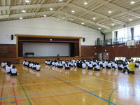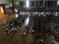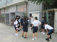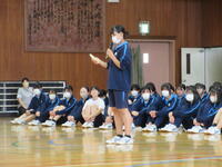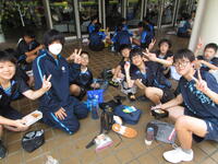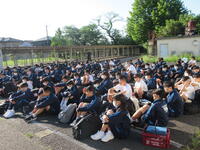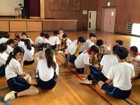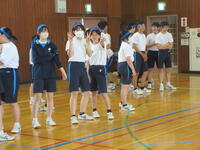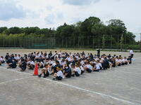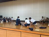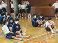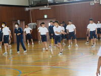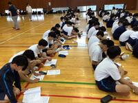 明日の校外学習に向けて、事前指導を行いました。武道場まで静かに移動する姿や荷物をきれいに揃えて並べる姿がとても立派で感心しました。整列や点呼の練習を繰り返し行い、スムーズにできるようになりました。今まで実行委員や学級委員を中心に、班別行動計画を作成したり集会計画を考えたりしてきました。明日も暑くなる予報です。水分補給をこまめにとりながら、スローガン「考動」の達成を目指そう!