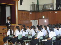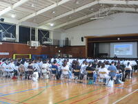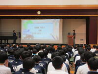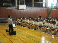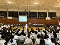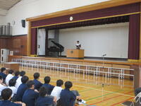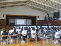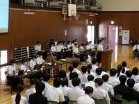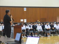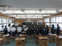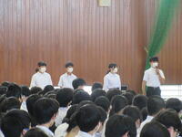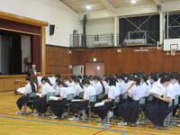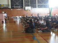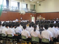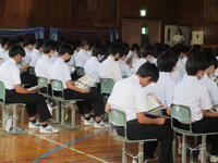 1年生が1学期のまとめとして学年集会を行いました。学級委員が成果と課題を伝え、小林先生から夏休みの過ごし方(学習の進め方や生活リズム)について話がありました。佐藤先生からは、日常生活で体験したマナー(みどりの窓口)について話がありました。自分のペースで学習を進めたり、部活動に熱中したり、興味のあることに時間を割いたり、家族との時間を充実させたり・・・楽しく有意義な夏休みになるにはどうすれば良いかを考え、実現できることを願っています。