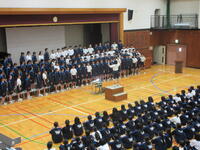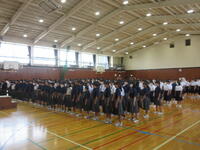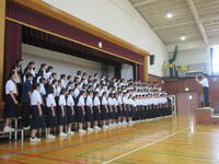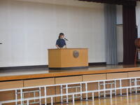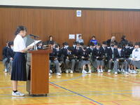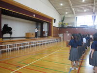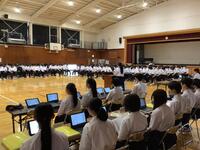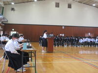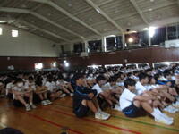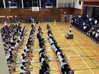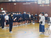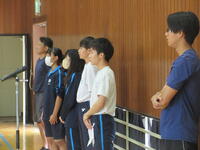 活動報告では、どの学年も1学期の歩みについて堂々と発表しました。授業や部活動に加え、校外学習・林間学校・修学旅行といった旅行的行事を経験し、計画性や協力性などび大切さも学びました。校長先生からは①暑さ(熱中症に対する理解をし、食事・睡眠・水分やナトリウムの補給)②報告集会(自分の考えを相手に伝えることの大切さ)③夏休みを有効に活用する(普段できない体験、興味のあることを調べたりまとめたりする)ことについて話がありました。また、生徒指導主任からは①SNSの使い方(発信する場合は、ポジティブ・見栄や嘘のない自分・感謝の言葉)②体を動かす(精神的にも良い効果がある)③自転車の乗り方(加害者にも被害者にもなる)④SOSの出し方(誰かに・どこかに相談してほしい、窓口はたくさんある)について話がありました。自分の発言や行動に責任を持って充実した夏休みを過ごしましょう。2学期、成長した姿で会えることを楽しみにしています!