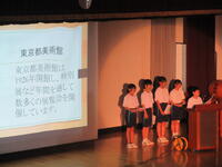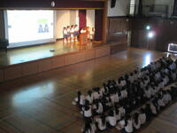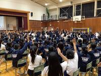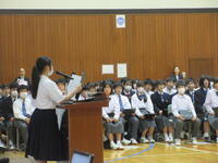 本日、林間学校報告集会を行いました。校長先生から報告集会を実施する目的として、「自分の考えをもち、相手に伝える力を身に付けてほしい」「なぜ?どうして?→調べる→周りに発信することを心がけてほしい」があるとお話がありました。2年生の発表では、当日の行程を写真や動画をもとにわかりやすく伝えてくれました。また、成果と課題を明確にし、今後に生かしていく決意を示しました。スローガン「輝(ひかり)」のように、一人一人が精一杯発表し、活躍する姿に大きな成長を感じました。