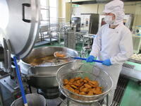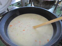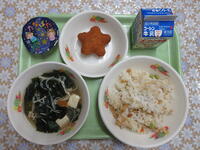 本日の献立は、ご飯・牛乳・あじフライ・ごま和え・豆乳味噌汁です。豆乳味噌汁の豆乳は豆腐に固める前の乳液の状態のものをいいます。原料である大豆は、細胞膜を強化して呼吸器や内臓を丈夫にします。血行をよくする作用もあり、美肌づくり、肩こりに効果があります。調理員の皆さん、本日も美味しい給食をありがとうございます!!!