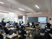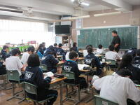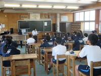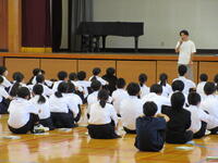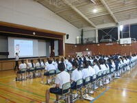 3年生を対象に体育館で租税教室を実施しました。「私たちの暮らしと税金」について、日常生活と関連させたりクイズを出題したりと幅広くお話をしていただきました。国税庁・県のホームページにも税について掲載されています。今回の学びを機会に自ら調べて知識を広げてほしいと思います。