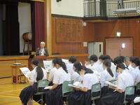 3年生はアンジェラ・アキさんの「サクラ色」の合唱練習に取り組んでいます。短い練習時間のときでも集中しています!どのような合唱に仕上がるか・・・今からとても楽しみです。